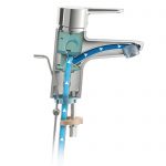 By reducing the amount of water held in the Connect Blue fitting by 80%, there is less water to flush through and reheat. That also means there is 80% less water in the tap to stagnate and allow bacterial growth. IdealBlue technology is a unique nickel and lead free technology, designed specifically for basin mixers. Water passing through the IdealBlue technology never touches chrome or nickel; the copper pipes are not plated on the inside, while all water-bearing surfaces are made of plastic. IdealBlue technology anticipates and exceeds new European Drinking Water Directives.