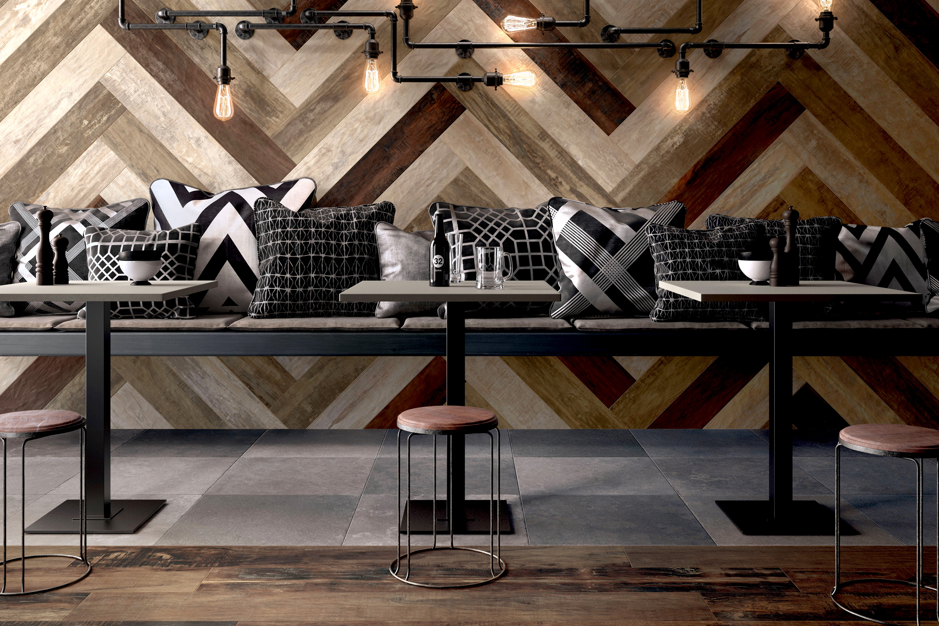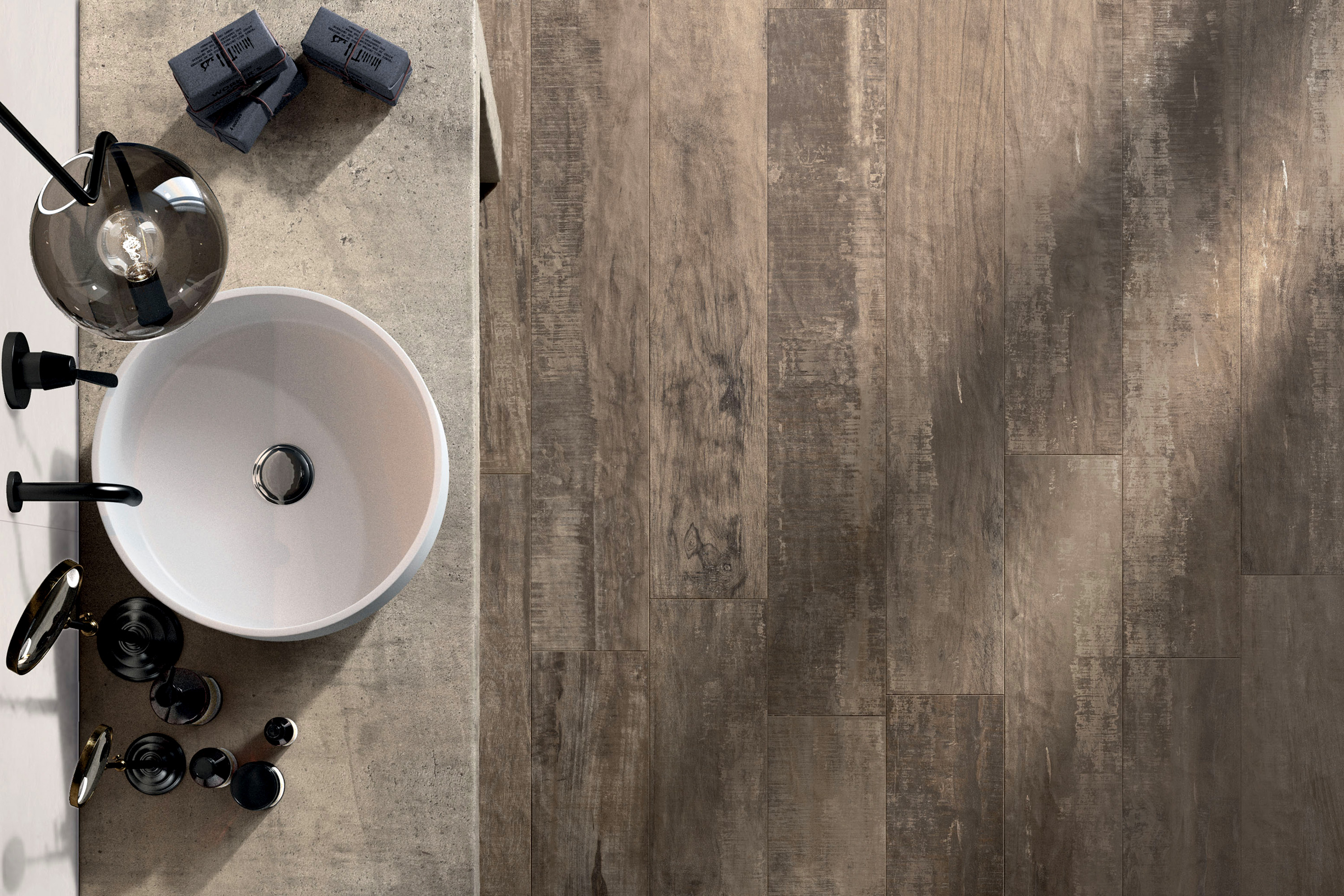Place_2B Dublin fully‐vitrified coloured‐body porcelain tiles (ISO 13006:2012 Annex G, group Bla) are produced by dry pressing high‐quality spray‐dried clays of various colours. Inspired by the distinctive interiors of Irish pubs, Place_2B Dublin consists of plank‐format satin‐finish tiles that display traces of old paintwork. The result is the appealing and slightly shabby look of aged materials marked by wear and footfall. The collection’s rustic style is perfectly in keeping with contemporary design and gives it an intense, modern appeal. Place_2B Dublin from Flaviker is a wood‐look ceramic tile collection with a warm, intense aesthetic in keeping with the latest trends.