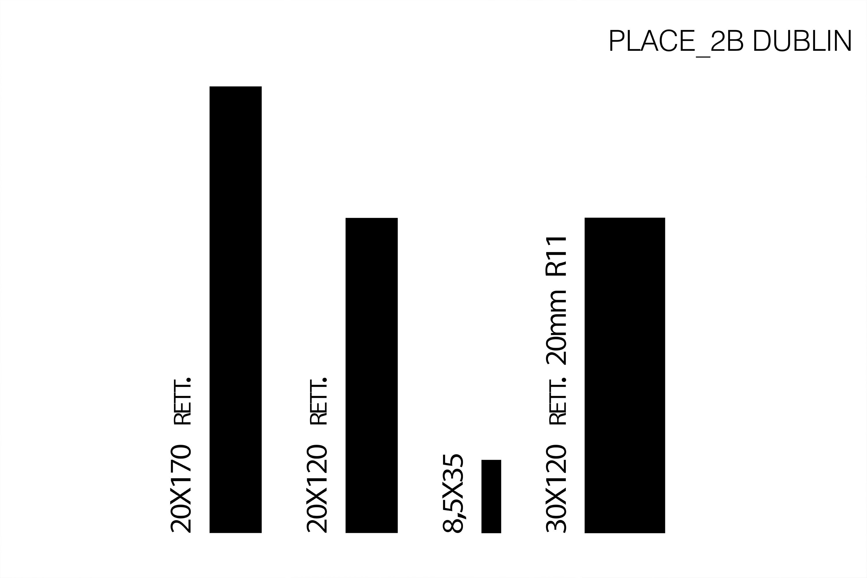 – PLACE_2B Dublin is available in three colours (Smoked, Taupe and Beige), 20 x 170cm and 20 x 120cm sizes, as well as a 30 x 120cm size with an extra‐large 20mm thickness for exteriors and a small fashionable 8.5 x 35cm size for original and creative installation layouts. PLACE_2B Dublin is produced using exclusive Auto‐ leveling technology to ensure perfectly flat floors in any situation. The tiles can be installed using either conventional techniques or the INSTA‐TILE system, which avoids the need for grout or adhesive and has the advantage of rapid removal and complete reusability.