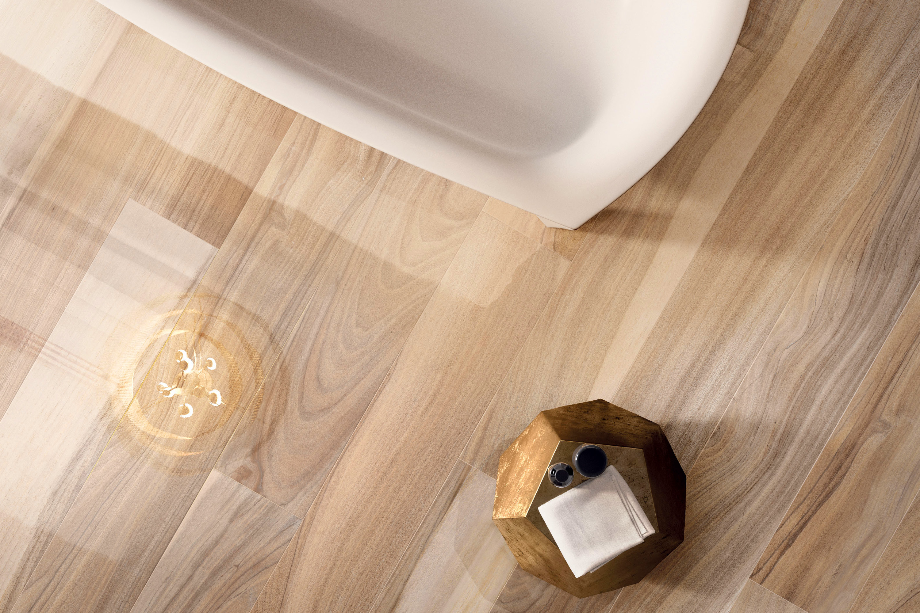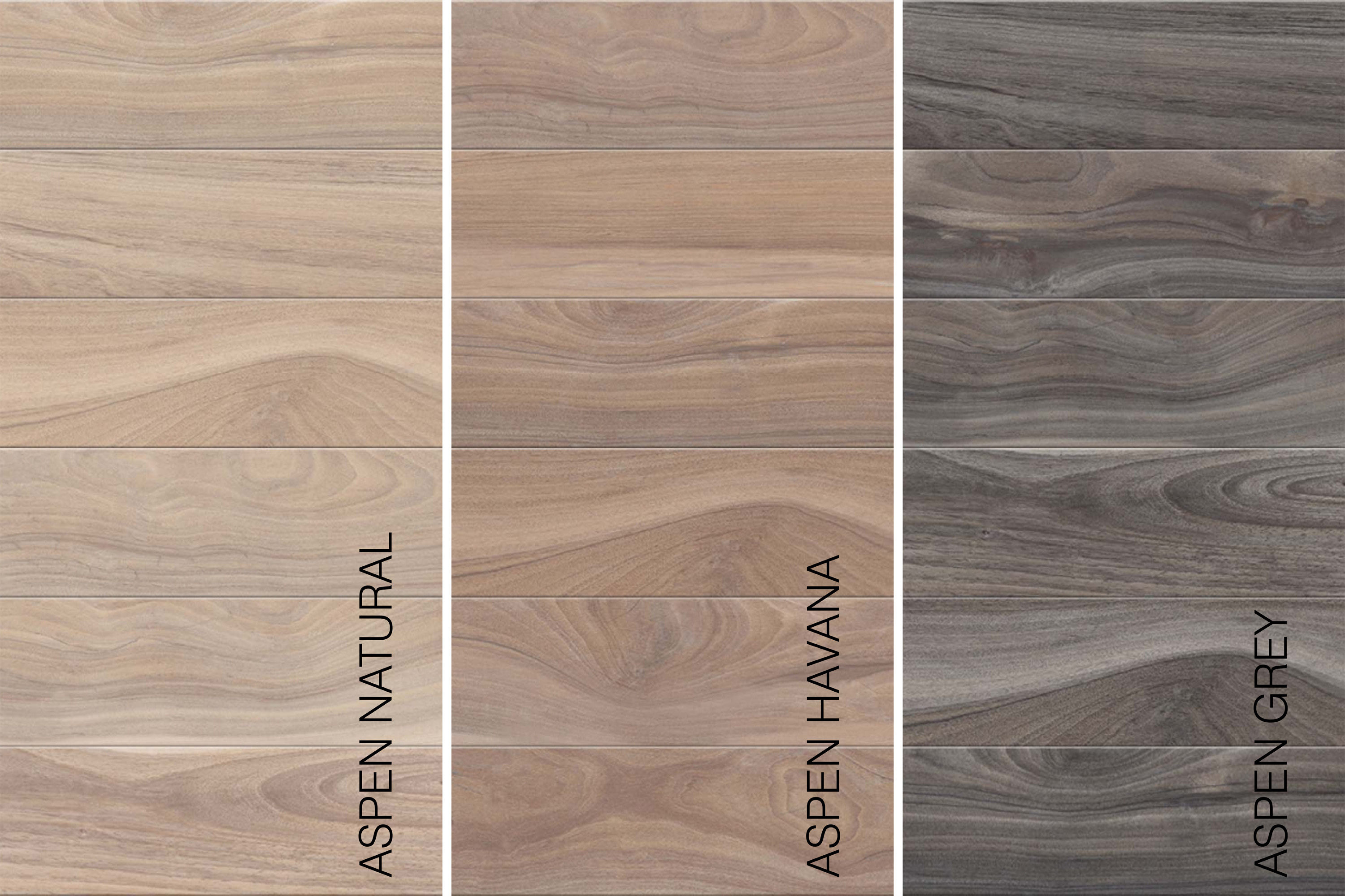 Place_2B Aspen coloured body fine porcelain tiles (ISO 13006:2012 Annex G, group Bla) are produced by dry pressing high‐quality spray‐dried clays of various colours. The Place_2B Aspen collection is inspired by wooden boards cut from old tree trunks with sinuous, elegant grain. This wood‐effect collection combines design and innovation and is aimed at lovers of luxury and sophistication. Its soft, velvety surfaces come in two different versions: natural, enhanced by a light manual planed effect, and Lux + which is reminiscent of lacquered wood.
