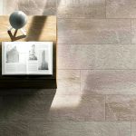 Forward coloured body fine porcelain tiles (ISO 13006:2012 Annex G, group Bla) are produced by dry pressing high‐quality spray‐dried clays of various colours. Forward marks the culmination of a creative process that began by observing various types of stone, in particular quartzite and multicoloured slate, then combined multiple photos to capture and re‐ elaborate their essence. The result is a harmonious visual and colour experience in which the stratifications of certain types of stone are enhanced by crystalline effects typical of other minerals.